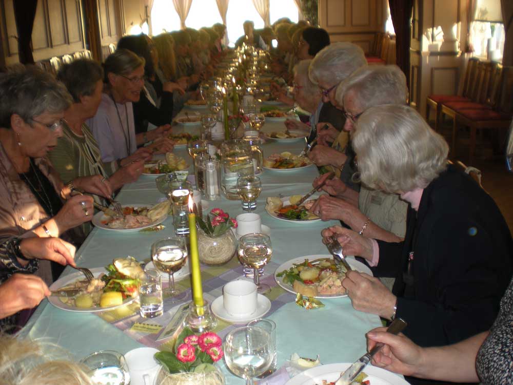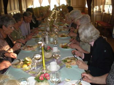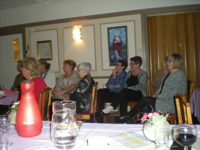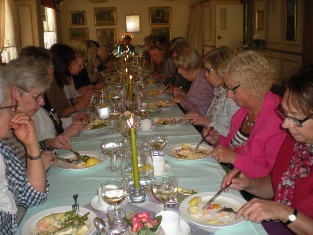 34 st damer fanns på plats och efter en måltid bestående av Wallenbergare och potatismos, gröna ärtor och sallad, fick vi